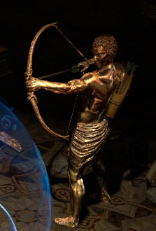 Золотой лучник напоминает человеческие статуи из золота, вооруженные луками.