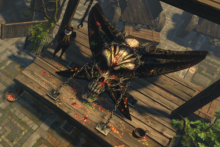 Бог отламывает часть стен собора и бросает в героя. Не используется если вы близко к Китаве. Наносит физический урон и урон от огня 50/50.