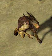 But years later, a new menace appeared near the encampment, a terror waiting to waylay anyone attempting to traverse Wraeclast's soaring cliffs. Somehow The Fawn had produced offspring, creatures as twisted and vile as their father. These "men" have a goat's ability to eat anything they encounter, driving them in relentless pursuit of anything edible. They attack from above, smashing their prey underfoot with cloven hooves. Any who survive that assault are pummeled to death by a barrage of savage headbutts. If you hear the bleating of The Fawn, run away.
