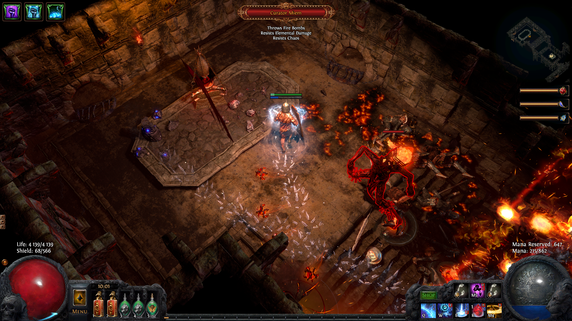 Curator Miem is the vaal side area boss for the Disused Furnace, Forgotten Gulch and Evacuated Quarter. He is an Undying Incinerator.