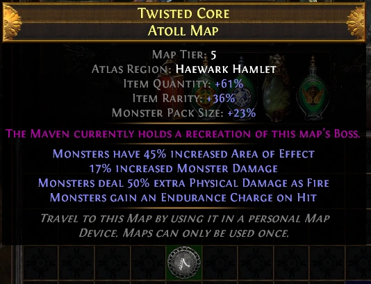 The Maven currently holds a recreation of this Map's Boss There is no point running this map as you cannot progress towards the The Maven's Challenge. |