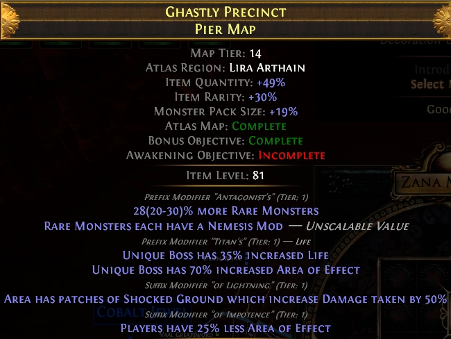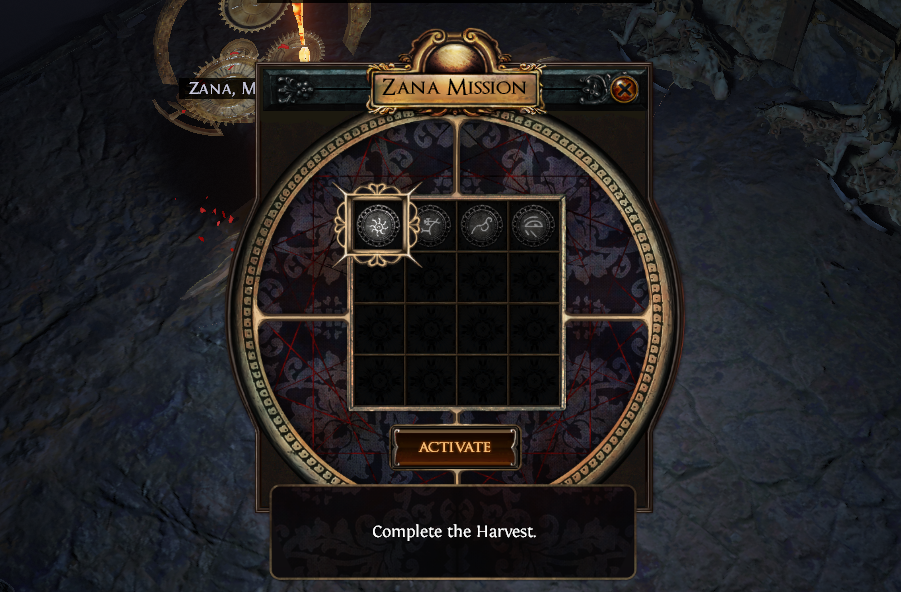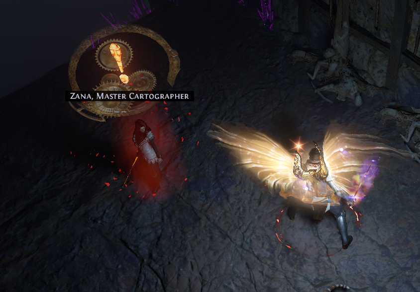 Run a Tier 3 or higher map, and kill the map boss. Zana should appear next to the map boss. Click her to open the Mission interface. |