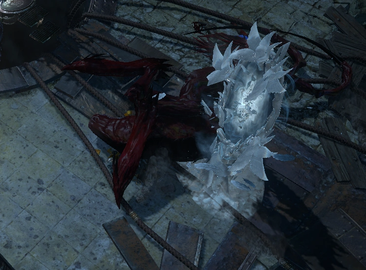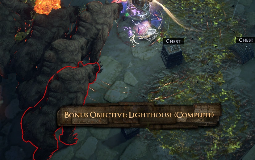 "Influnced" maps meaning that one of the Conquerors have arrived on the map and by completing the map you are one step closer to finding their citadel. In this example map, we see icy effects and the appearance of ice golems and dinosaurs, indicating that the map is influenced by Veritania, the Redeemer, the "icy lady". |