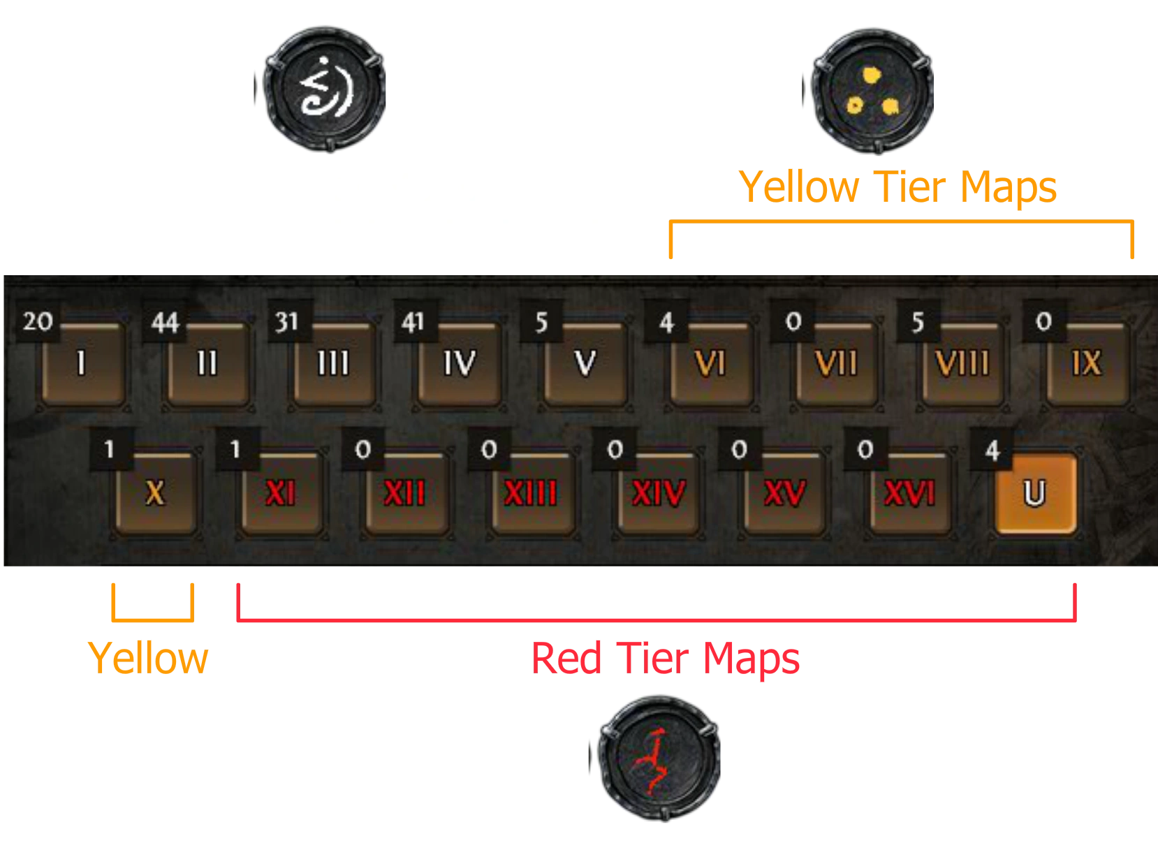Now that you have completed all yellow maps, you should have obtained a large quantity of red maps as well (if you ran the Tier 10 yellow maps with 4 watchstones socketed in the region). If you don't have any red maps, you can take some from friends or buy some, as seed maps to obtain more map drops.