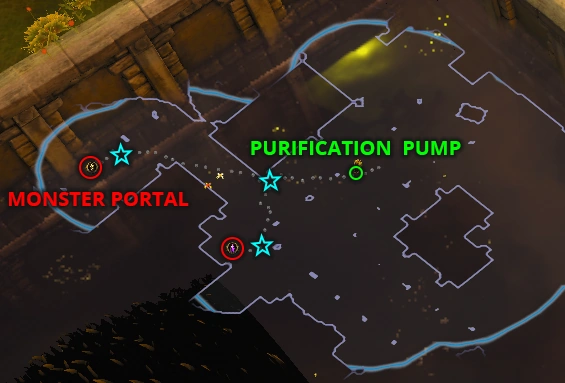 Now the Blight encounter has begun. You have 5 minutes to kill multiple waves of enemies and to defend the Purification Pump at all costs.