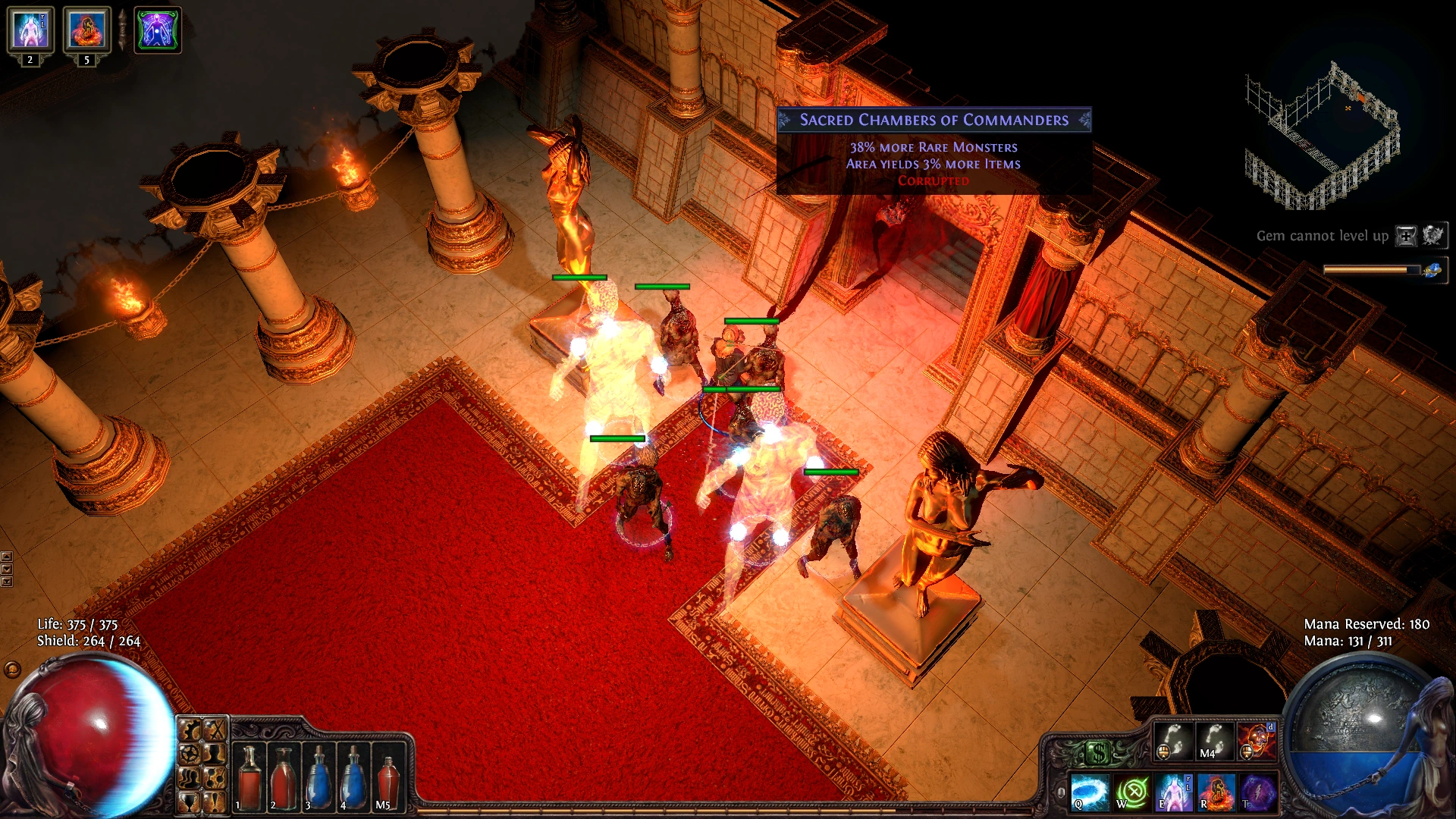 Lua error: Error: invalid field alias "areas.infobox_html"; aliases cannot contain dots or quotes.. Sacred Chambers is a Corrupted area that can be found in both levels of The Solaris Temple. Unlike most areas, the statues in this area do not start inanimate but rather spawn in packs like other monster types.