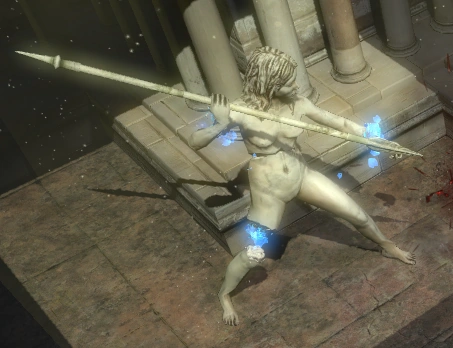 Towering Figments resemble large stone women carrying spears.